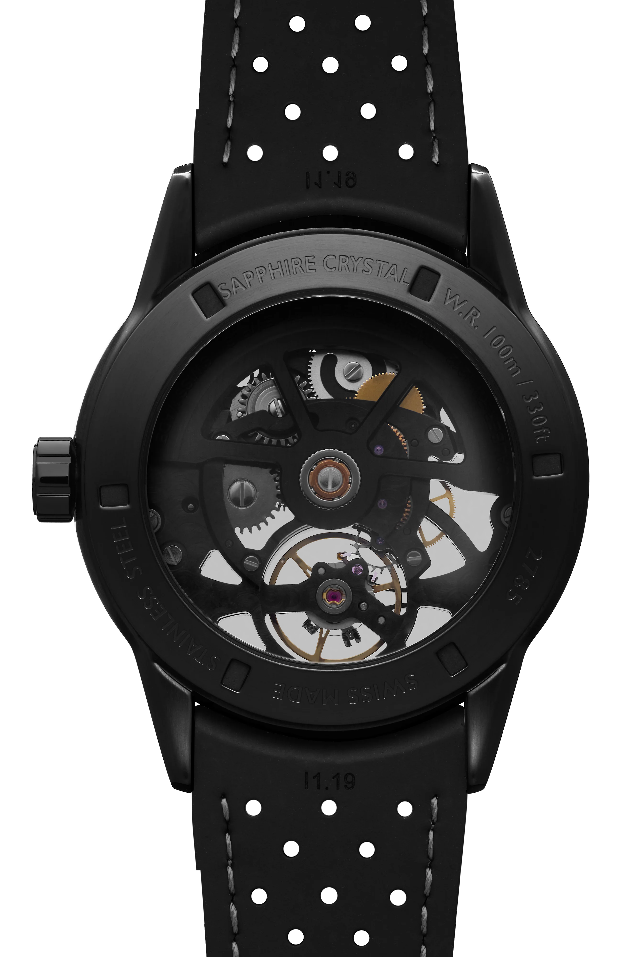 RAYMOND WEIL asserts its ambition for innovation with the dial completely opened, offering a view of the balance wheel at 6 o'clock and exposing the manufacturing beauty, and highlighting the richness of watchmaking expertise. The black rubber strap offers modernity and urban style to this exclusive timepiece. The new stylish skeleton Calibre RW1212 is proof of the ever-evolving achievements to these in-house movements.