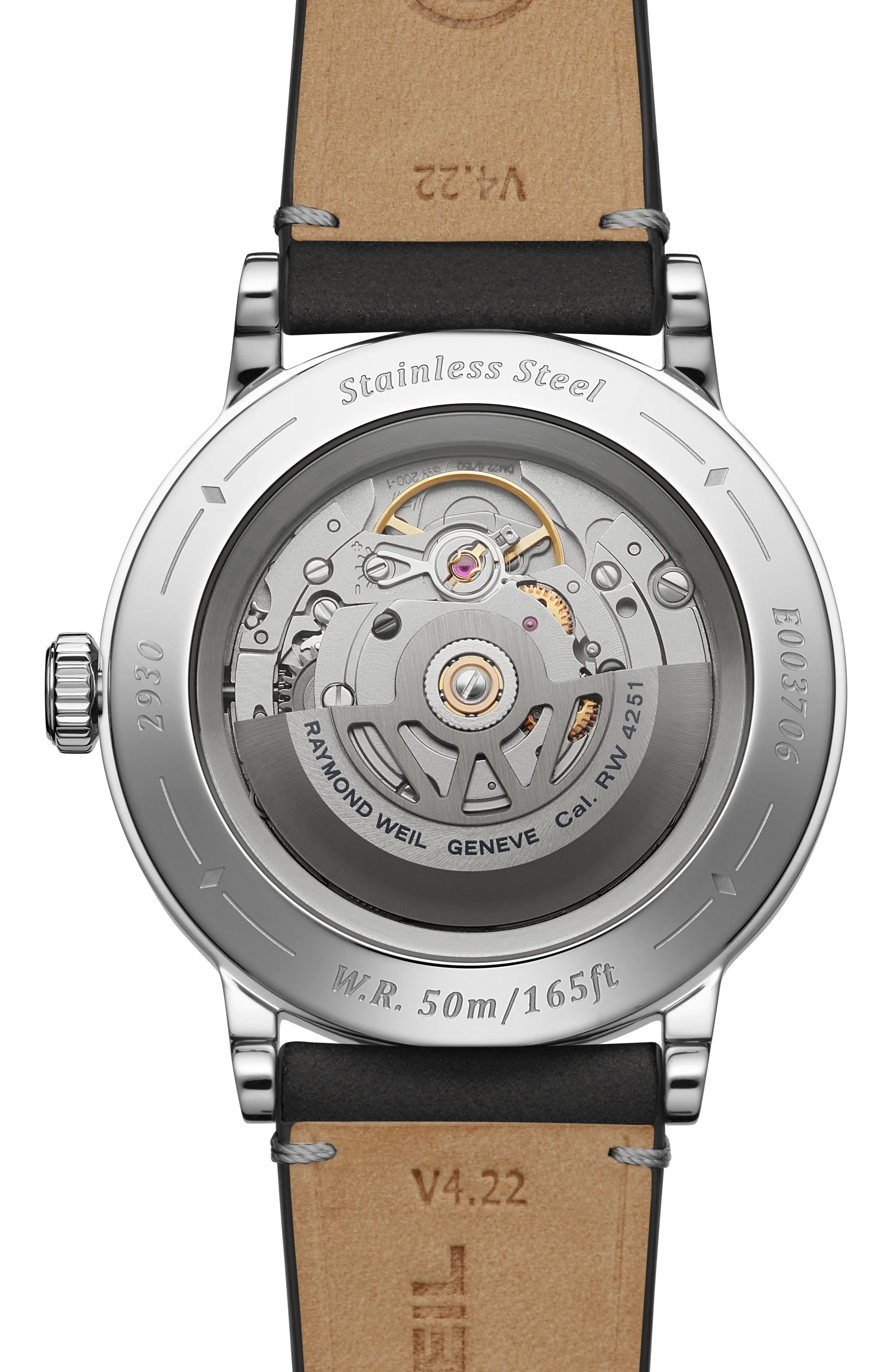 A sapphire caseback affords sight of the self-winding movement within and the “W-shaped” oscillating weight, RAYMOND WEIL’s horological signature. Offered in a selection of dial colours, each model is paired with a colour-coordinating genuine calf leather strap with a unique W-stitched detail.